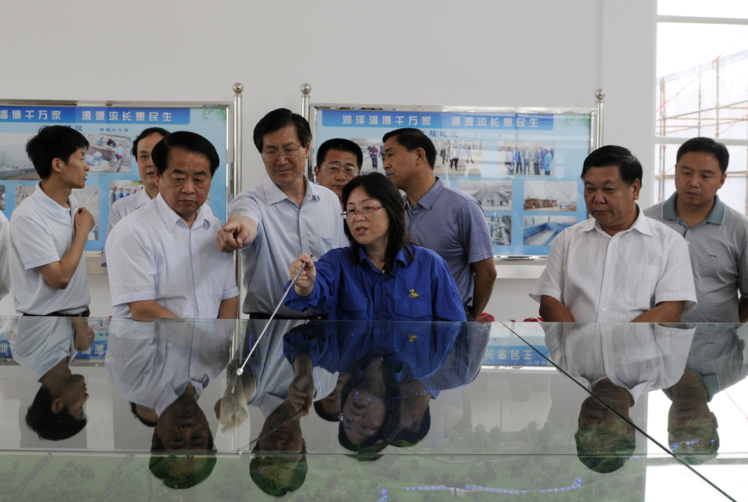 儀式前,出席竣工儀式的領(lǐng)導及有關(guān)人員參觀(guān)了淄博市城鄉同源同網(wǎng)飲水安全暨引太入張供水工程沙盤(pán)、工程建設圖片展,在水廠(chǎng)總控室詳細了解了水廠(chǎng)生產(chǎn)工藝流程,到平流沉淀池、均粒濾料濾池等生產(chǎn)現場(chǎng),聽(tīng)取了“引太入張”有關(guān)情況的介紹。