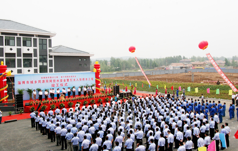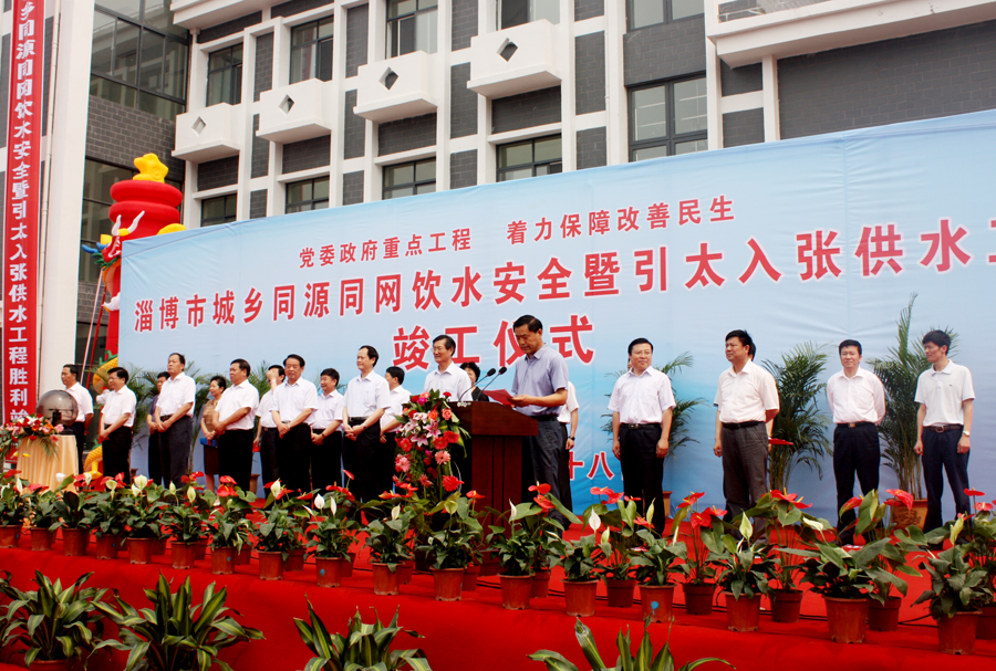 ??? 竣工儀式由鄒光平主持。市水利與漁業(yè)局黨委書(shū)記、局長(cháng)王永勝代表建設單位介紹了工程建設情況。上海市政工程設計研究總院院長(cháng)湯偉代表設計、施工單位介紹了工程設計、施工情況。劉有先代表市委、市政府向淄博市城鄉同源同網(wǎng)飲水安全暨引太入張供水工程勝利竣工表示熱烈祝賀,向為工程建設付出辛勤勞動(dòng)的各有關(guān)單位、施工人員表示親切慰問(wèn)和感謝。他說(shuō),建設城鄉同源同網(wǎng)飲水安全暨引太入張供水工程,是市委、市政府從即期需求和長(cháng)遠出發(fā)作出的一項戰略決策,是一項造福子孫后代的重大民生工程。城鄉同源同網(wǎng)飲水安全暨引太入張供水工程的竣工通水,對于合理配置和利用水資源、增強城市承載服務(wù)功能、促進(jìn)經(jīng)濟社會(huì )全面協(xié)調可持續發(fā)展,都具有重要而深遠的意義。工程自開(kāi)工以來(lái),市委、市政府高度重視,水利部門(mén)精心組織施工,各有關(guān)區縣、部門(mén)和單位全力協(xié)同配合,沿途干部群眾積極響應支持,各參戰單位保質(zhì)量、保安全、保工期,為工程順利實(shí)施作出了重要貢獻。工程的勝利竣工,是淄博市經(jīng)濟社會(huì )發(fā)展進(jìn)程中的一件大喜事,是向建黨90周年獻上的一份厚禮。劉有先強調,工程竣工取得了重要階段性成果,下一步,要保障工程系統的安全運行、切實(shí)發(fā)揮工程應有的作用。各有關(guān)部門(mén)和單位要牢固樹(shù)立大局意識和責任意識,進(jìn)一步加強協(xié)調配合,建立健全科學(xué)有效的管理運行機制,積極探索多水源、多系統供水的運營(yíng)管理模式,確保供水安全,確保系統高效運行,真正讓這一重大民生工程持續發(fā)揮效益,長(cháng)期造福淄博人民。