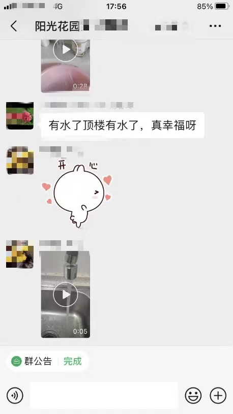 經(jīng)集團各分公司、市自來(lái)水公司多部門(mén)間的通力合作,在兩天一夜時(shí)間里,大家戰高溫、斗酷暑,攜手攻堅,17:46,陽(yáng)光花園小區全線(xiàn)恢復了供水。此時(shí)業(yè)主群一片歡呼,紛紛為水務(wù)人敬業(yè)精神和一心為民的責任擔當點(diǎn)贊?!坝兴?,頂樓有水啦,水務(wù)工作人員您們辛苦了,真幸福呀”。盡管高溫下的連續奮戰讓參與其中的每一個(gè)人都疲憊不堪,但用戶(hù) 發(fā)自?xún)刃牡囊痪洹坝兴?,真幸福呀”,讓參與搶修的水務(wù)集團及各分子公司30余名工作人員,此時(shí)心里和用戶(hù)一樣都是滿(mǎn)滿(mǎn)地幸福,身為水務(wù)人的使命感、自豪感、獲得感油然而生……