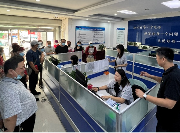 在營(yíng)銷(xiāo)服務(wù)中心,工作人員詳細介紹了供水業(yè)務(wù)受理、流程辦理等內容,并重點(diǎn)講解了居民一戶(hù)一表改造等業(yè)務(wù)。隨后參觀(guān)了“2165111”供水服務(wù)熱線(xiàn),近距離了解接線(xiàn)員記錄、派單、反饋等工作辦理情況,體會(huì )熱線(xiàn)工作的不易,對工作人員的奉獻與付出點(diǎn)贊肯定。