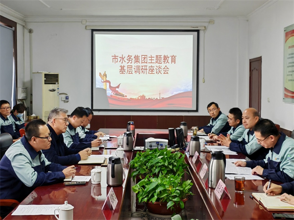 為推動(dòng)主題教育走深走實(shí),近日,市水務(wù)集團黨委書(shū)記、董事長(cháng)周鵬到市自來(lái)水有限責任公司調研指導工作,集團相關(guān)部室負責人、市水司領(lǐng)導等陪同調研。