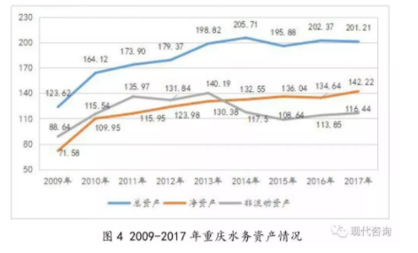 在公司資產(chǎn)方面,截止2009年12月31日,重慶水務(wù)總資產(chǎn)達123.61億元,凈資產(chǎn)為71.57億元,資產(chǎn)負債率(母公司口徑)為40.80%。由于重慶水務(wù)屬于資本密集型企業(yè),非流動(dòng)資產(chǎn)占總資產(chǎn)比例相對較高,為71.70%,非流動(dòng)負債占總負債比例為81%。