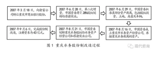 作為重慶水務(wù)上市工作的重要基礎和關(guān)鍵環(huán)節之一,改制重組是其進(jìn)入資本市場(chǎng)的第一道門(mén)檻,其是否規范直接影響到上市的成功與否。上市前改制重組是指重慶水務(wù)根據現有的資產(chǎn)、人員、財務(wù)及營(yíng)業(yè)狀況,以股權或資產(chǎn)為紐帶,通過(guò)一系列的經(jīng)濟活動(dòng),將企業(yè)改建為符合現代企業(yè)制度的重新整合過(guò)程。
