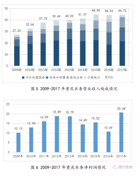 經(jīng)過(guò)多年的資本運作,重慶水務(wù)在業(yè)態(tài)布局上,已由上市時(shí)單純的供排水一體化延伸至環(huán)境綜合治理、基礎設施咨詢(xún)與建設、環(huán)??萍挤?wù)等領(lǐng)域;在市場(chǎng)占有率方面,重慶水務(wù)則擁有重慶市主城區自來(lái)水市場(chǎng)97%份額和全市污水處理市場(chǎng)94%份額。由于重慶水務(wù)的資本運作方式較為簡(jiǎn)單,主要以供排水業(yè)務(wù)并購為主,且尚未充分發(fā)揮資本市場(chǎng)融資優(yōu)勢,導致目前仍未突破區域市場(chǎng)而發(fā)展成為國內水務(wù)行業(yè)領(lǐng)導者。