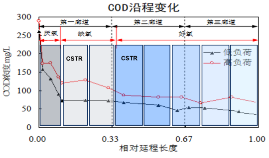 從COD沿程變化圖可以看到,在每一個(gè)小段中幾乎都線(xiàn)性變化。